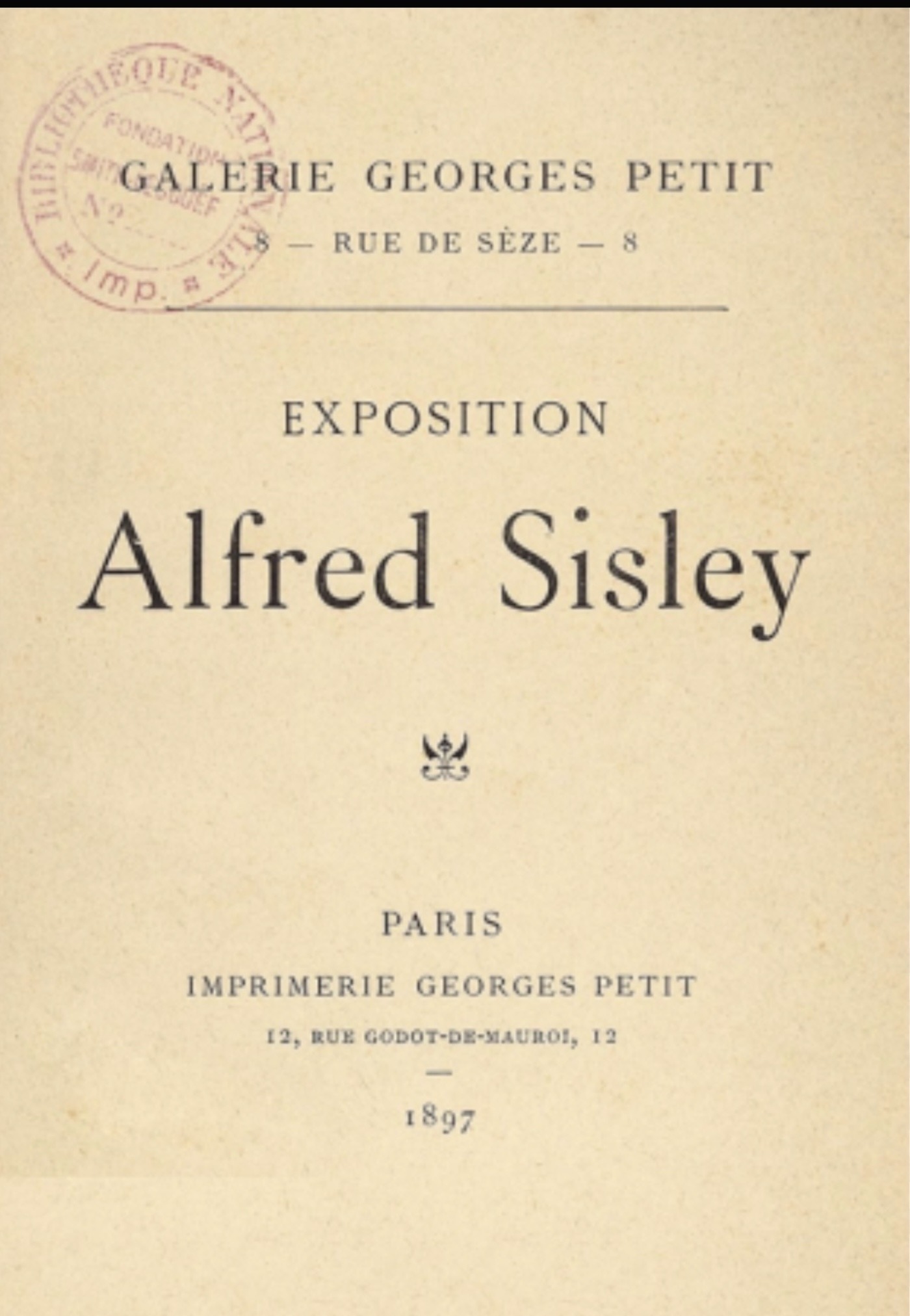 Nach einem Streit zwischen Sisley und Durand-Ruel im Jahr 1896 wurde Georges Petit offizieller Galerist des Malers. In seiner Galerie in der Rue de Sèze fand vom 5. bis 28. Februar 1897 eine Retrospektive des britischen Künstlers statt. Petit war sehr optimistisch, was den Erfolg der Ausstellung anging; Sisley hatte mehrere Sammler seiner Werke kontaktiert und sie gebeten, ihm seine besten Gemälde auszuleihen.