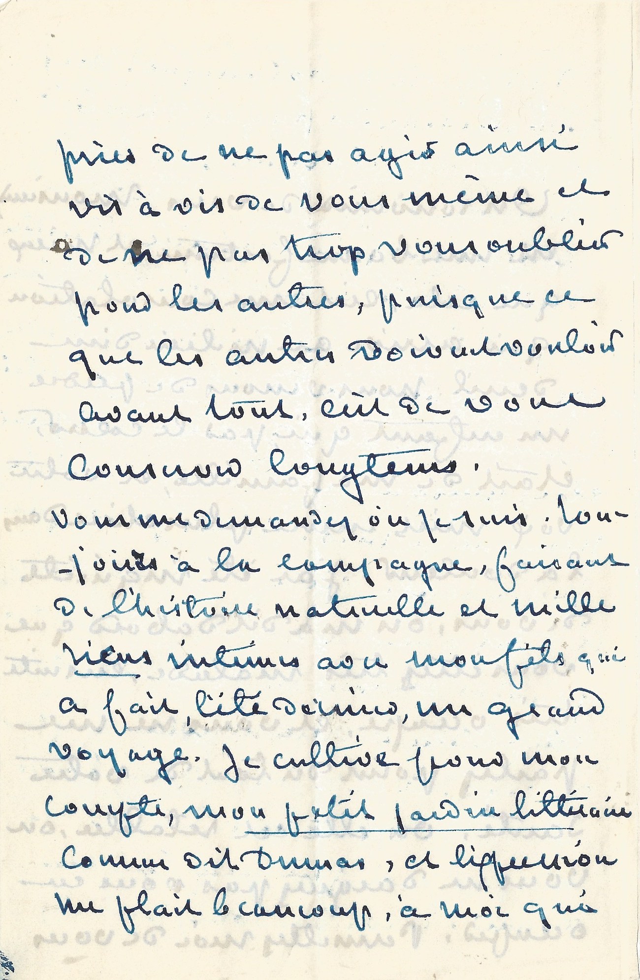 «Un ricordo di voi, signore, è una fortuna e, meglio ancora, è una consolazione che arriva in mezzo al lutto. Abbiamo appena perso un bambino che, nel mio cuore, faceva parte della mia famiglia, e la tua voce mi è ancora più cara nel dolore. Ero preoccupato per te, mi è stato detto prima che eri molto malato, poi molto occupato , e non mi parli affatto della tua salute, o è guarita, o non ti degni di parlarne. . Permettimi di chiederti di non comportarti così con te stesso e di non dimenticarti troppo per gli altri, poiché ciò che gli altri devono volere soprattutto è trattenerti a lungo. Mi chiedi dove sono. Ancora in campagna, a fare storia naturale e mille cose intime con mio figlio che l'estate scorsa ha fatto un grande viaggio. Coltivo per conto mio, il mio piccolo giardino letterario come dice Dumas , e l'espressione mi piace moltissimo, poiché sono innamorato della botanica. I miei romanzi sono pagine d'erbario e se vi piacciono ne sono felice e fiero , ma non così inebriato da illudermi sull'utilità di ciò che siamo liberi di pubblicare di questi tempi in Francia. La mia tendenza al divagamento intellettuale è forse una grazia di stato, poiché mi fa addormentare sul poco che sono. Ma per sentirmi di vivere un po' meglio, è necessario che gli altri facciano grandi cose, e io aspetto con impazienza un nuovo raggio da te . Questo piccolo giardino ha bisogno di grandi sprazzi di luce solare, e non sono io che posso dargliela. Lavorare poi, pubblicare poi, e soprattutto vivere a lungo vivendo molto allo stesso tempo , come queste grandi forze della natura che si rinnovano sempre con l'emissione della loro potenza. Grazie per la tua bella lettera. Ricordami Madame Hugo, dì a tuo figlio che il suo Shakespeare mi soddisfa e mi affascina - e tu, Signore, credi nella mia devozione grande quanto la mia ammirazione . Giorgio Sand. Nohant, 22 febbraio 1862.