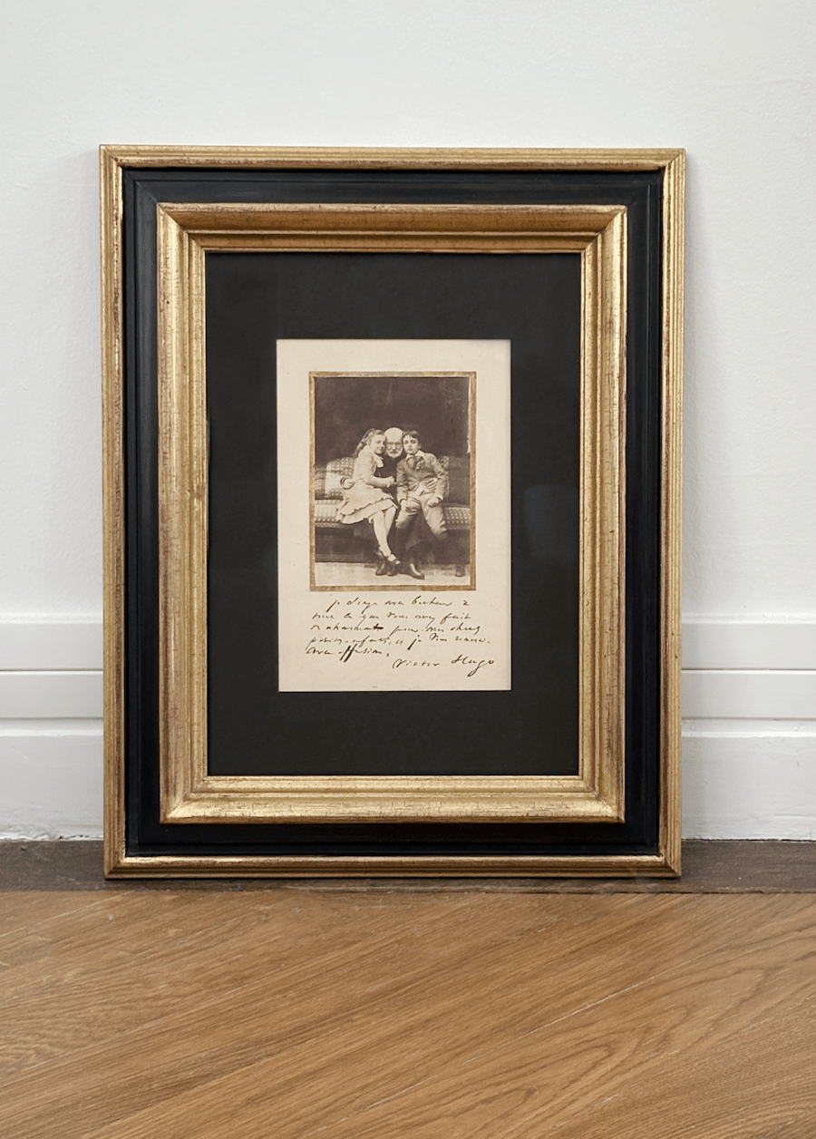 « Je songe avec bonheur à tout ce que vous avez fait de charmant pour mes chers petits-enfants, et je vous remercie avec effusion. Victor Hugo. »