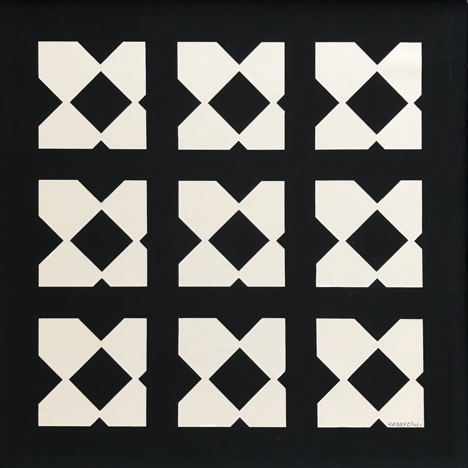 En 1957, Vasarely écrit à propos de ses recherches sur le blanc et noir : « L’optique, fût-elle illusion, n’appartient-elle pas au cinétisme ? Négatifs – positifs, diapositives, photogrammes, jeux hallucinants du blanc et noir. D’ici part ma découverte : la même composition résolue en blanc et noir me donne automatiquement une deuxième composition résolue en noir et blanc. Les deux œuvres sont qualitativement égales, à la fois identiques et diamétralement opposées : images miroirs. J’en ai déduit, philosophiquement parlant, que les signes blanc et noir, l’antinomie inéluctable des idées du passé comme jour et nuit, ange et diable, bien et mal, sont en réalité des complémentarités, idées androgynes fécondes».